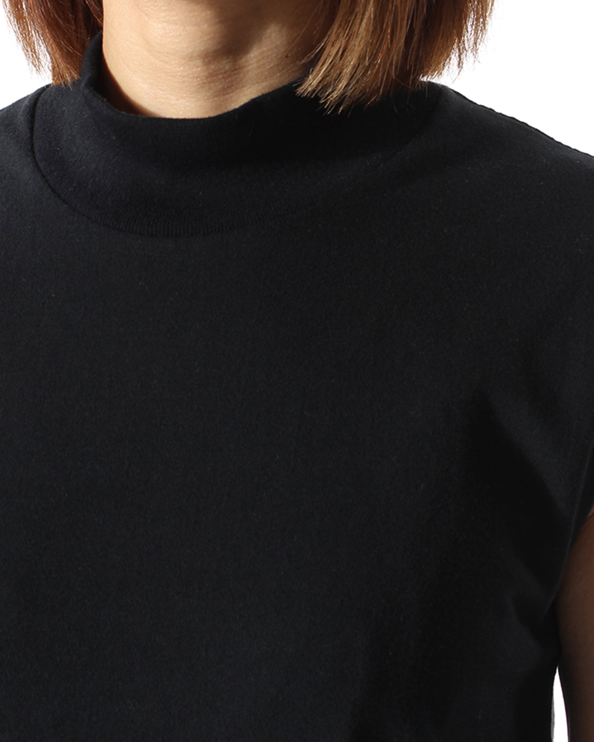 定番のモックネックTシャツを、ノースリーブ仕様にアレンジした1枚。