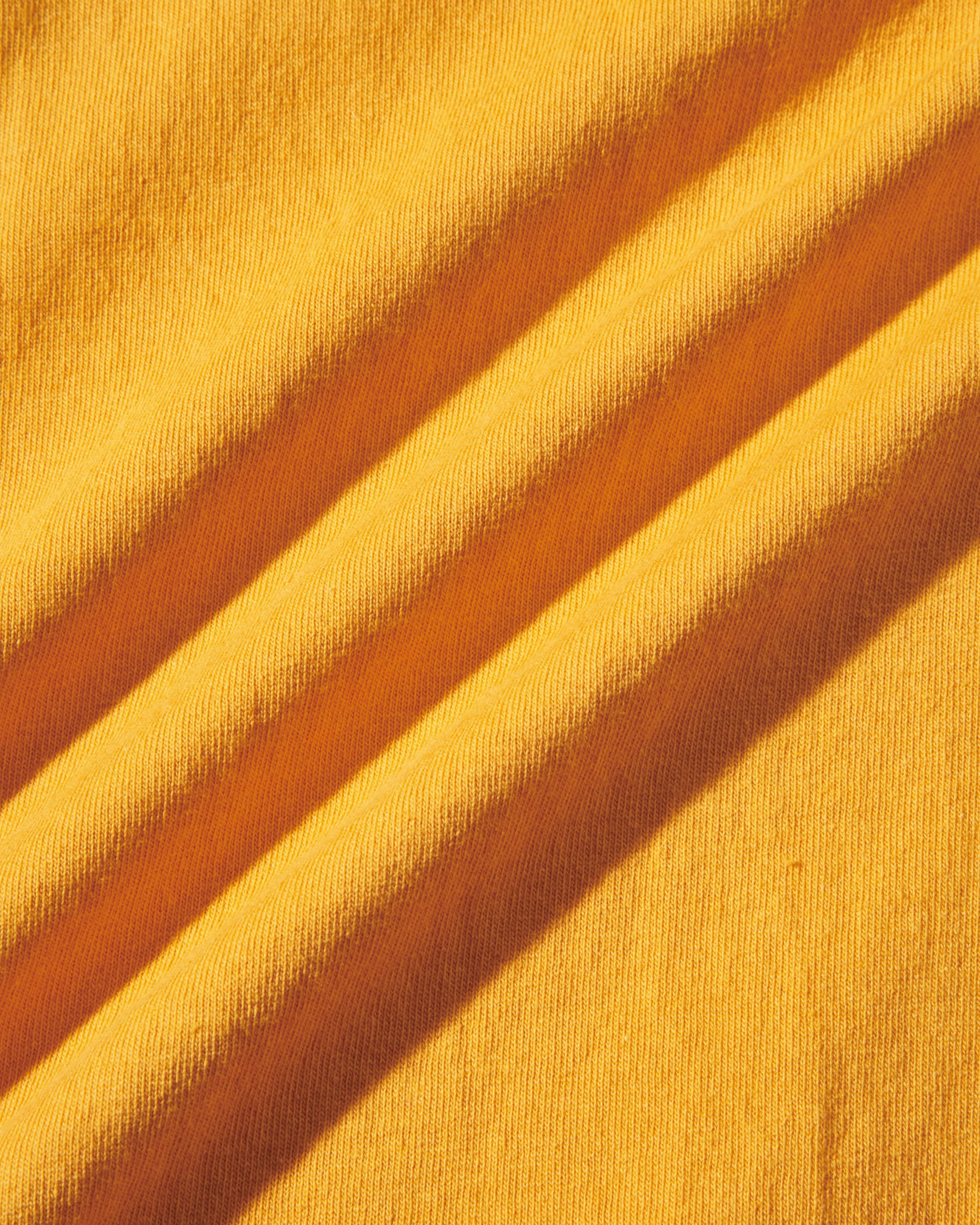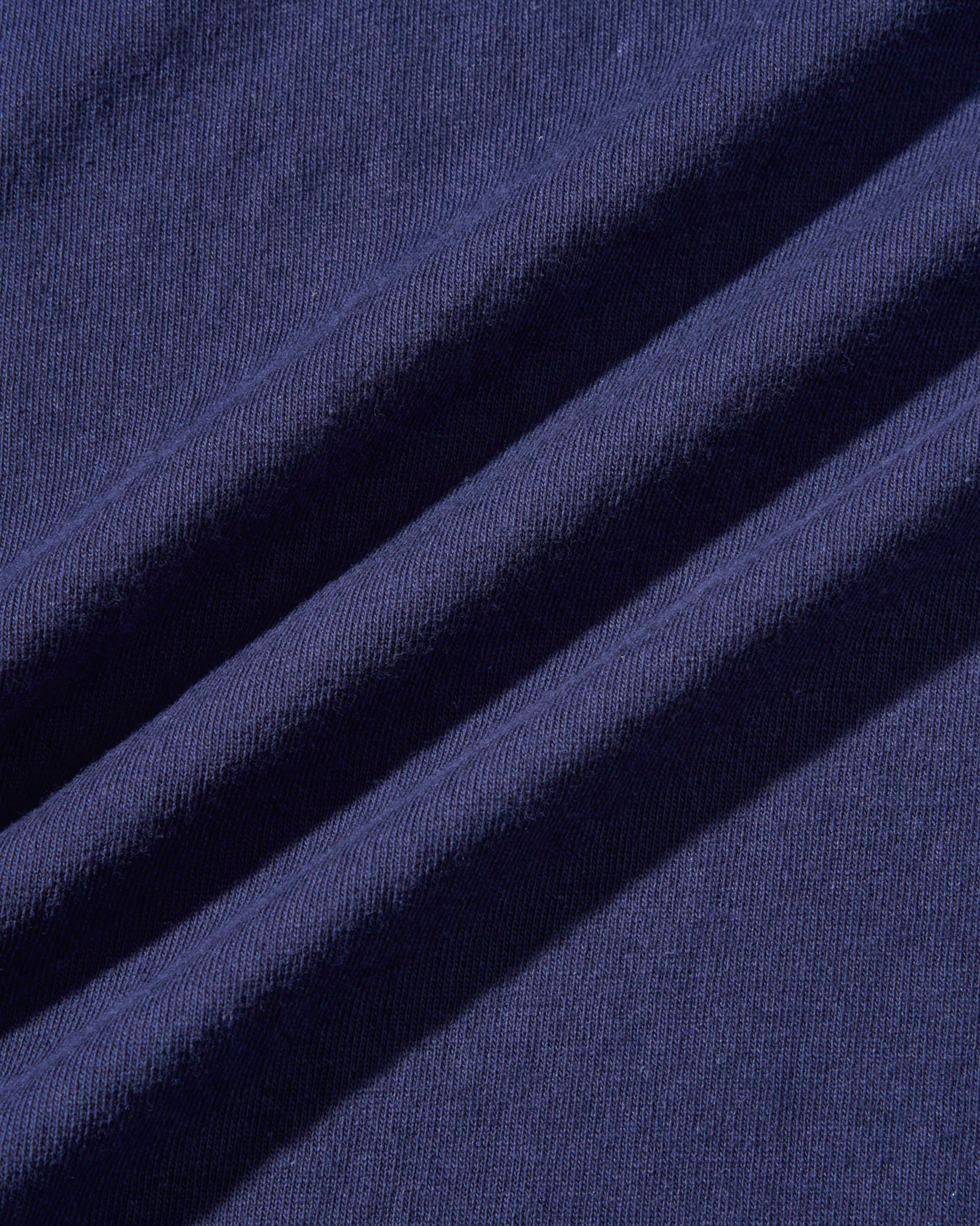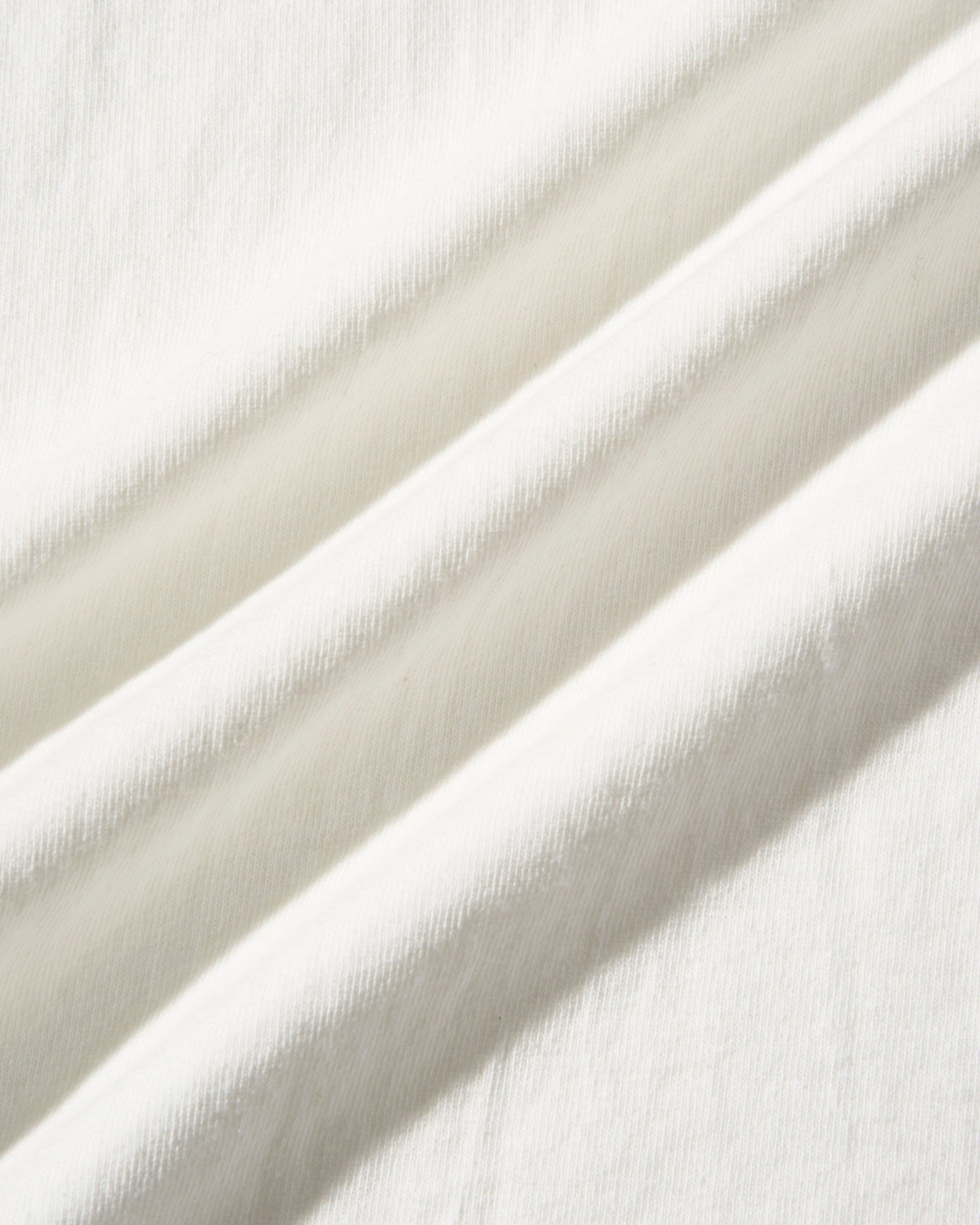 丸胴ボディ、タコ巻バインダー仕様の首元、裾と袖口には天地始末(ブラインドステッチ)を採用。