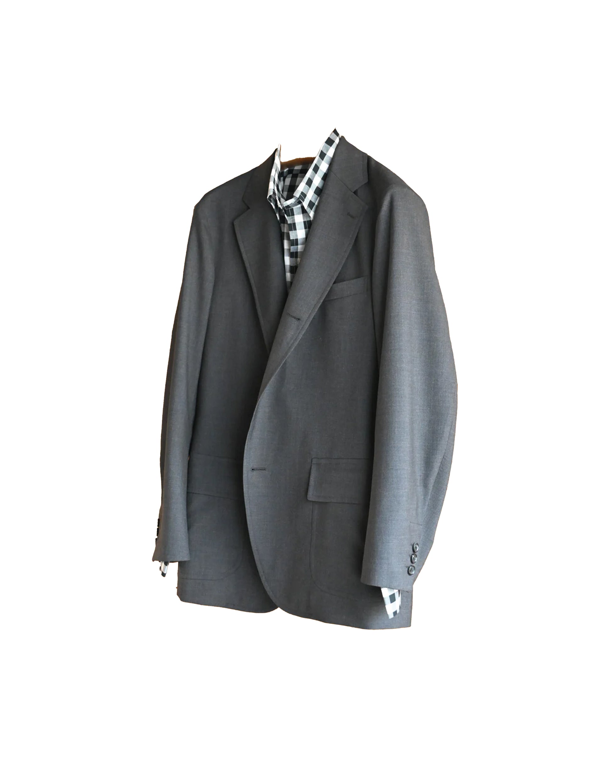 3つボタン、ナチュラルショルダー、細めのラペルといったクラシックなディテールに、現代的な着やすさを備えた一着です。