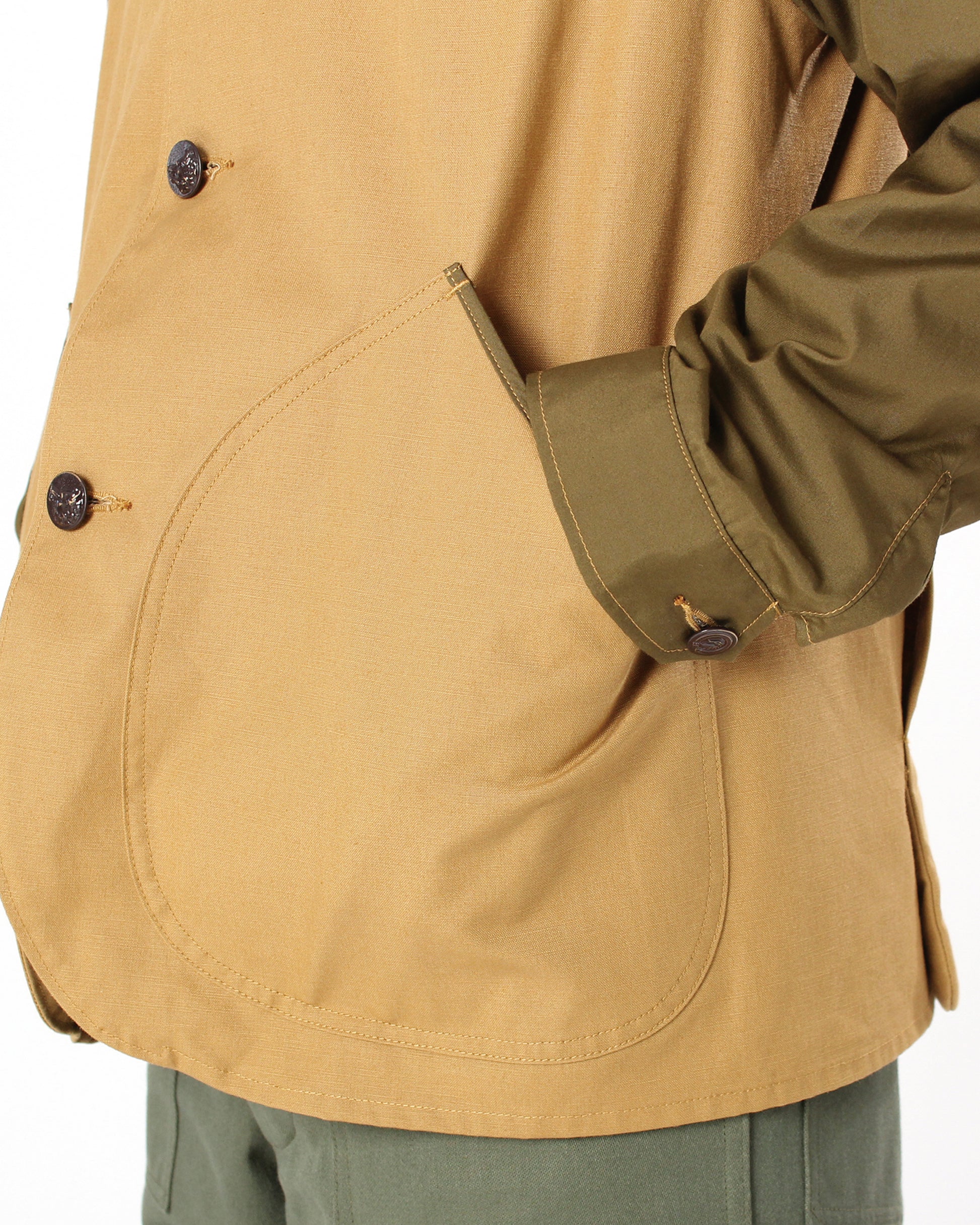 背面にはハンティングジャケットに欠かせないゲームポケットを備えています。