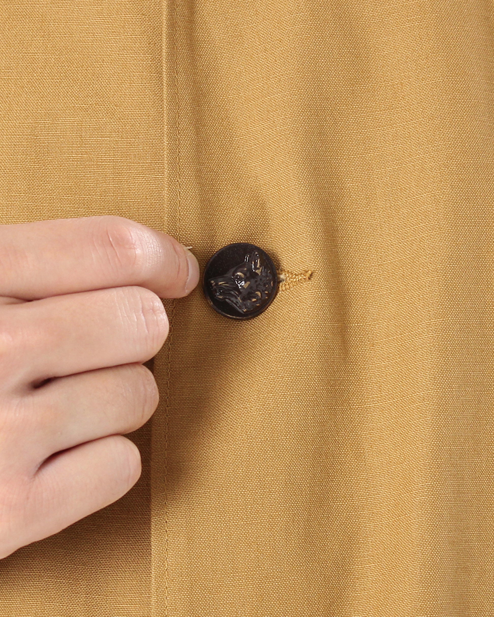 *デッドストックの生地を使用しておりますので、生地表面に折れ線や細かい傷等ある場合もございますので予めご了承ください。これらも含めて雰囲気抜群の仕上がりとなっております。