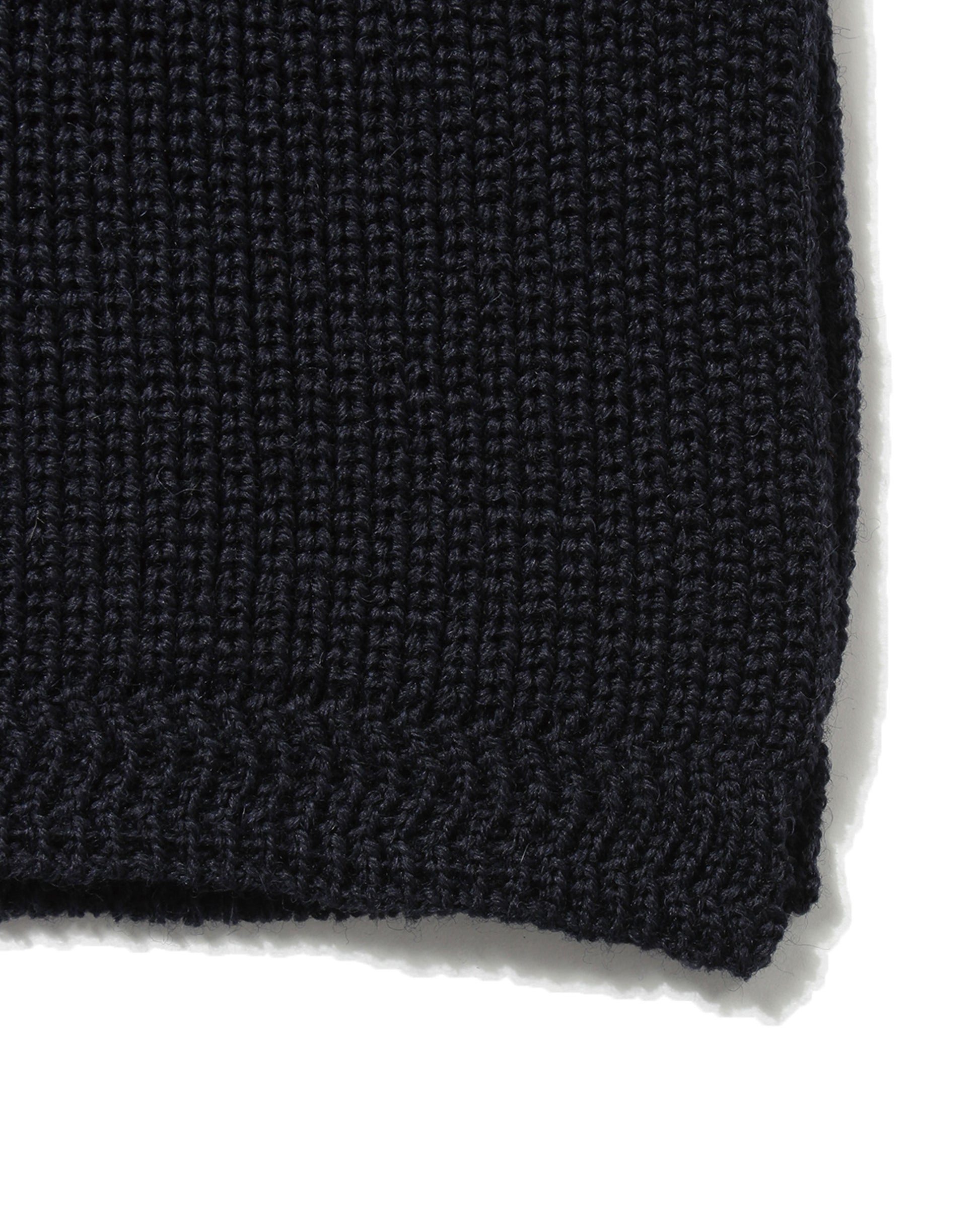 密度の高い編み込みで保温性と耐久性に優れ、使い込むほど風合いが増します。首元をしっかり覆える扱いやすいサイズ感です。