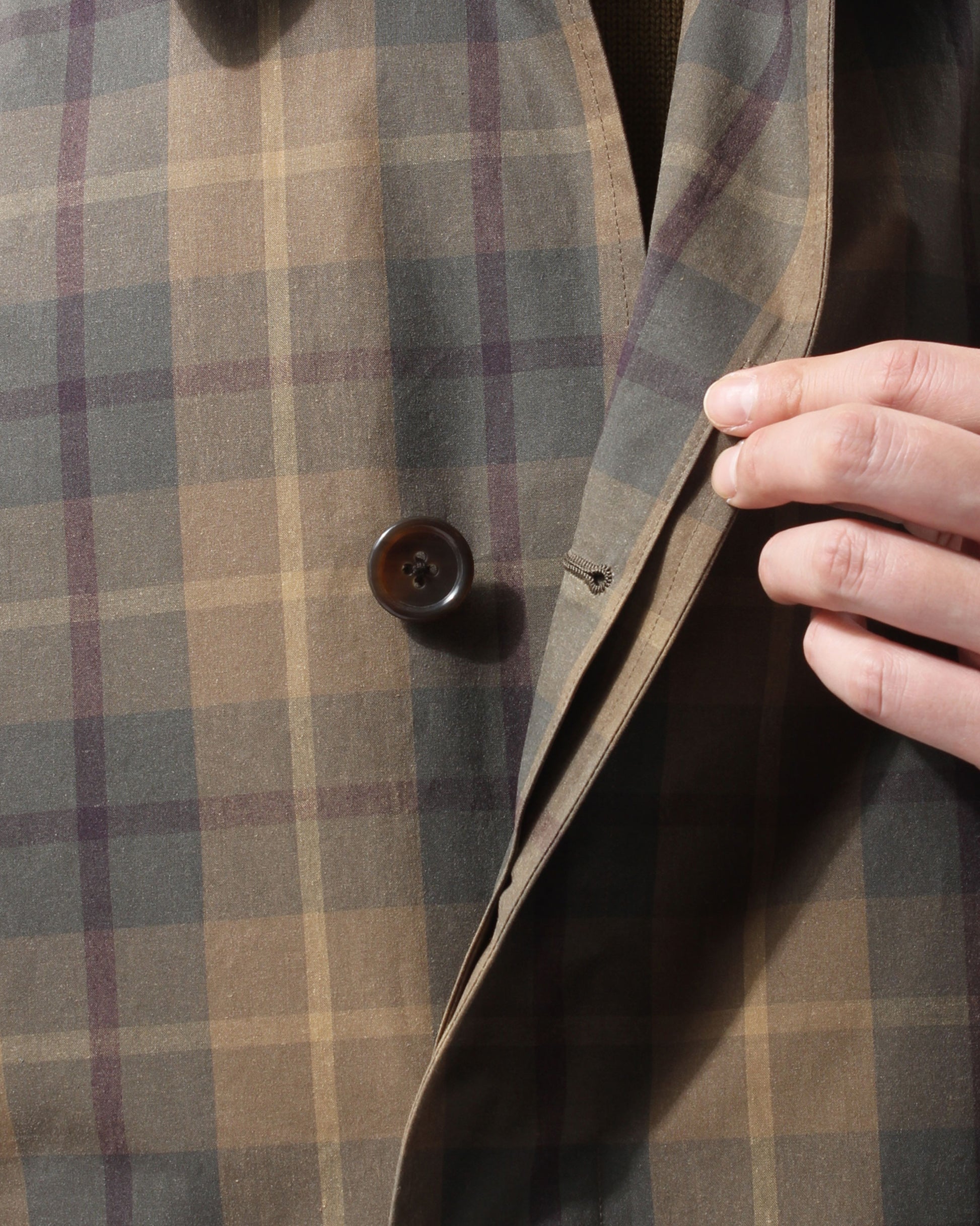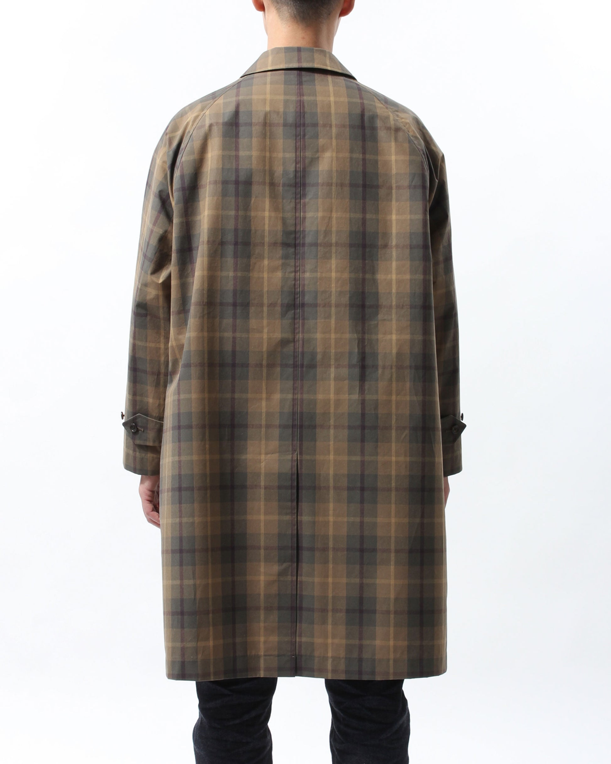 フロントは貫通ポケット仕様で、ジャケットやパンツのポケットにもアクセス可能。ブラウン・グレー・キャメル・ボルドーチェックの4色展開。