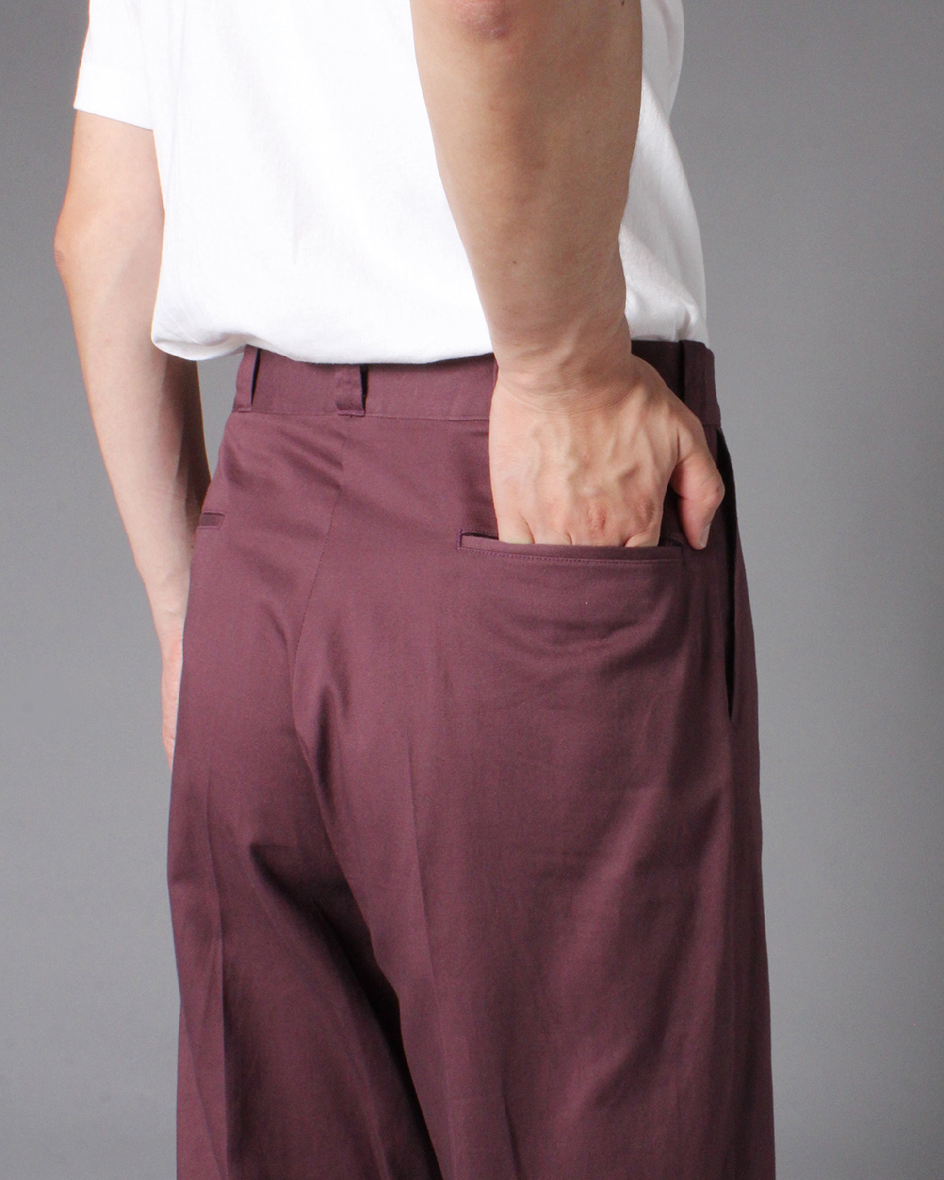 生地には、軽やかで通気性のあるコットンツイルを採用。春夏はもちろん、季節を問わず快適に穿ける質感も特徴です。